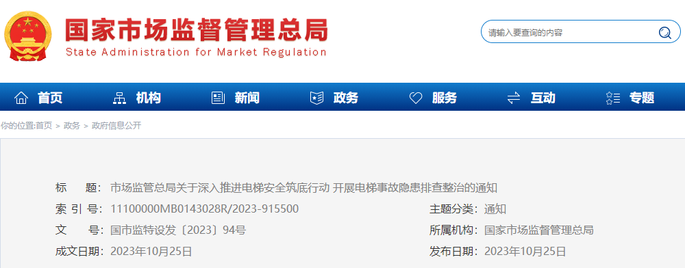 在云南彌勒發(fā)生重大電梯安全事故,造成3死17傷后,市場(chǎng)監(jiān)督管理總局發(fā)布“關(guān)于深入推進(jìn)電梯安全筑底行動(dòng) 開展電梯事故隱患排查整治的通知”。