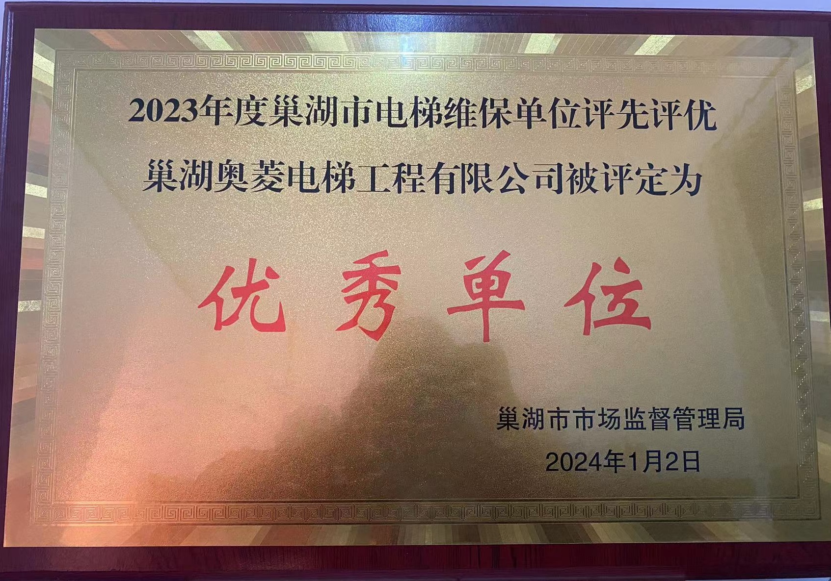 熱烈祝賀我公司榮獲巢湖市市場監(jiān)督管理局頒布的“2023年度巢湖市電梯維保單位評先評優(yōu)優(yōu)秀單位”稱號。巢湖奧菱電梯工程有限公司全體員工將一如繼往的為電梯安全使用保駕護(hù)航!奮斗前行!
